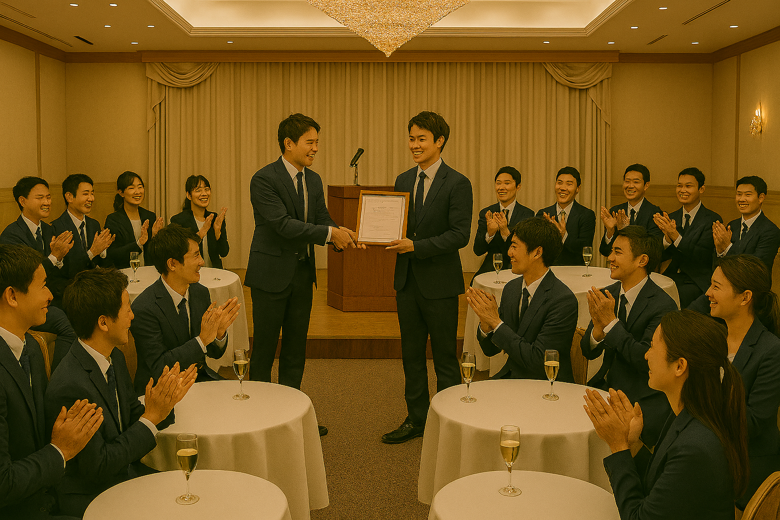 祝賀会では、会社に貢献した55名の社員を対象とした表彰式が執り行われ、役員より感謝と称賛の言葉が贈られました。